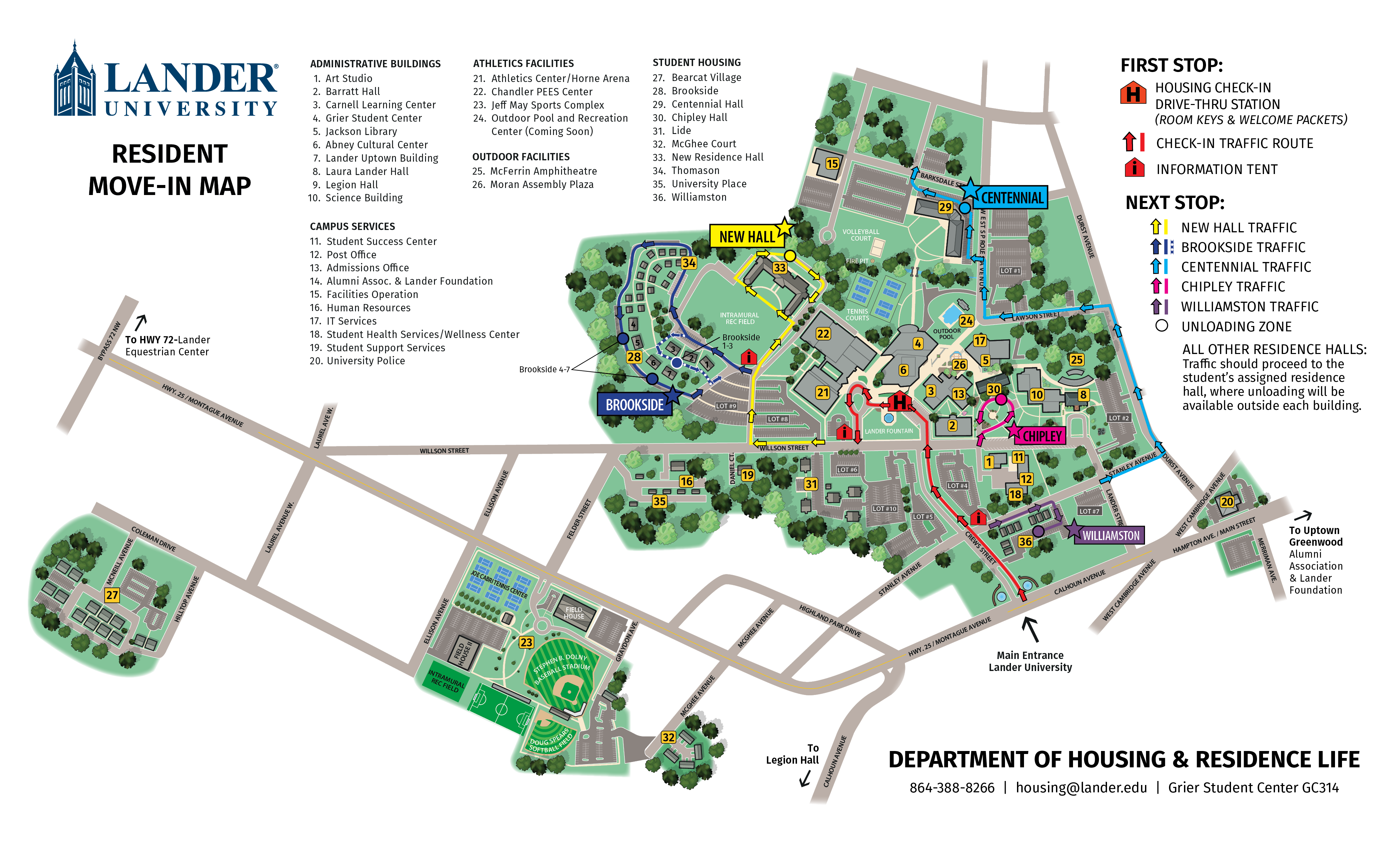 For questions regarding move-in appointments, please contact the Office of Housing & Residence Life at 864-388-8266 or email us at housing@lander.edu