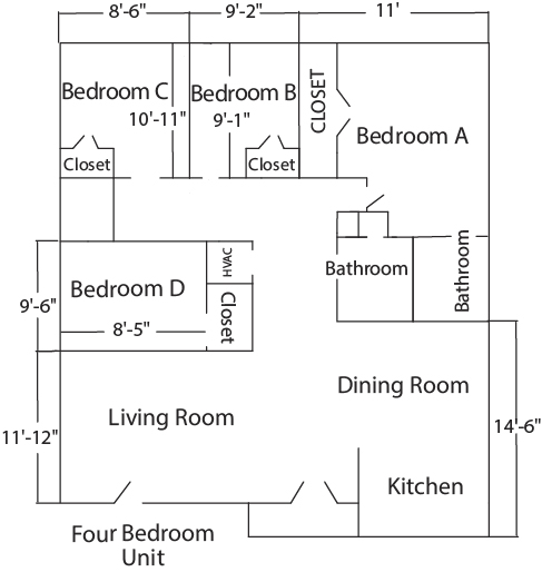 Number of students per bedroom: 1-2