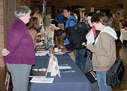 Lander University students were able to find out more about the requirements for advanced degrees when the university held its annual Graduate School Fair on Tuesday, Oct. 9. Eleven schools from North Carolina and South Carolina were represented at the event sponsored by Lander's Office of Career Services. Director Amanda Sizemore Morgan said students had the opportunity to speak with academic representatives and find out why they might need an advanced degree, and the investment of time and the challenges involved.