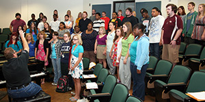 Dr. Robert Gardiner, associate professor of music at Lander and a saxophonist in the Jazz Ensemble, is one of the concert organizers. He said it will be "one seamless performance," and explained that all of the musical groups will be on the darkened stage at the same time with the spotlight trained on individuals and ensembles as they perform. The program will proceed from one selection to the next without applause in between.