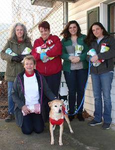 Standing, from left, are Greenwood Humane Society Executive Director Karen Pettay; Shelter Manager Angela Hall; Butler and Humane Educator/Volunteer Coordinator Hope Kalbach. Kneeling beside "Haze," a five-year-old terrier mix, is volunteer Cindy Scott.