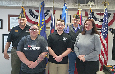 U.S. Marine Corps Veteran Joseph Clark, of Fort Mill, is awarded the "VFW Sports Clips Help a Hero Scholarship" presented by officials at VFW Post 8131 in Greenwood on Monday, February 10. Clark, a computer information systems dual engineering major at Lander University, received the $5,000 scholarship which provides service members and veterans with the financial assistance they need to complete their educational goals without incurring excessive student loans. Pictured are, from the left: Commander Michael Sudik, of VFW Post 8131; Danielle Brock, Manager of Sport Clips Greenwood; Joseph Clark, Recipient of Help a Hero Scholarship and student at Lander University; Jr. Vice Commander Jeff Price of VFW Post 8131; and Susan Russo, Veterans Affairs Coordinator for Lander University.