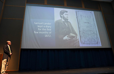 Dr. David Mash of the Jackson Library discusses the “formational years” of the Williamston Female College and the Rev. Samuel Lander whose vision created the school. Photo by Deb Crenshaw-Nygro
