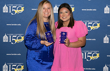 Raylyn Garner (left), of Hodges, and Maria Martinez-Contreras, of Lexington, Lander’s 2021-22 Greek Leaders of the Year. Photo by Laura B. Wood