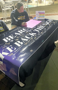 At the event, students were encouraged to share their story, create posters and sign a banner signifying their stance against sexual violence on college and university campuses. Around Lander’s campus, signs were posted with facts and statistics regarding sexual violence, and attendees were led on a tribute walk around the campus with L.E.D. candles, which Gilstrap says represents not only a tribute to survivors, but “the light in the darkness” that exists for survivors.